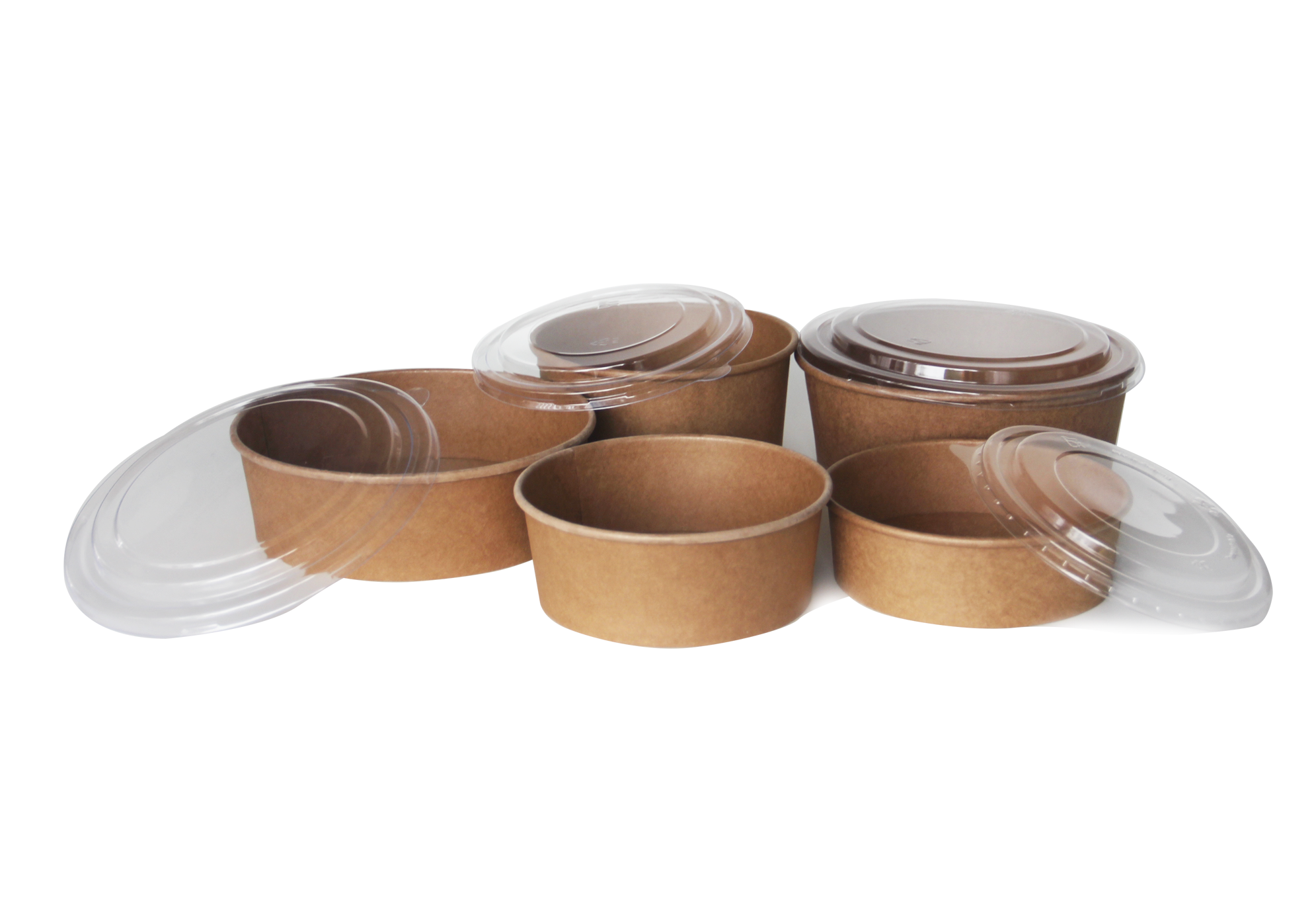 Microwave Kraft salad bowls are made from brown unbleached natural paper material, an eco-friendly alternative to conventional plastics. They are coated with a thin layer of PP coating, which helps the food to remain leakproof and greaseproof. Kraft salad bowls are strong, durable and sturdy, highly suitable for displaying and serving both cold and hot dishes such as pastas, noodles and fruits as takeaway for cafe, restaurant or catering business.